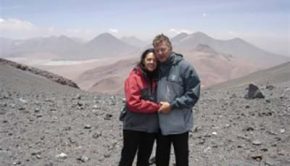 Maura Marinangelo e seu marido Alcides, de Santo André (SP), no topo da cratera do vulcão Nascar, no Chile, a…